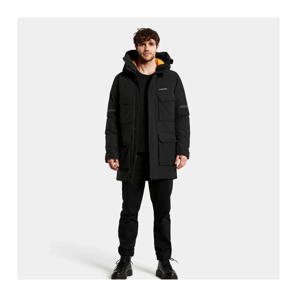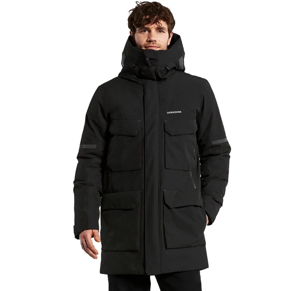 pockets, two with zips. Drew has a fixed hood that is adjustable front