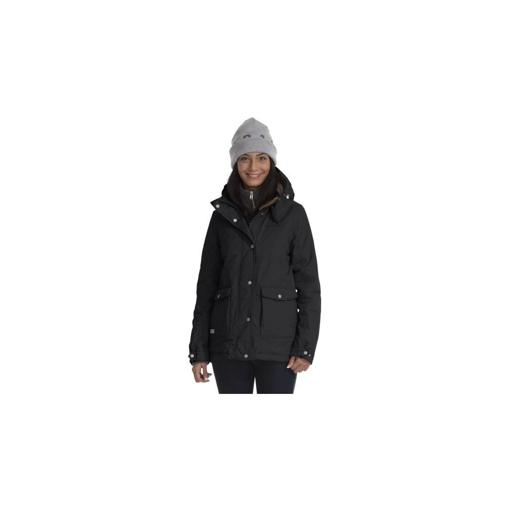 A jacket for women with a narrow fit and fixed hood, made of 75 % cotton