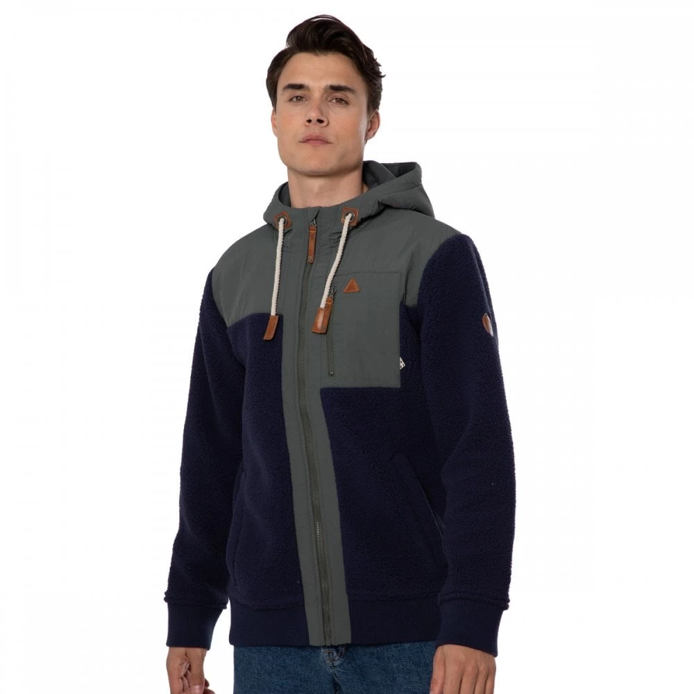 Introducing the fantastic Mendos by NXG. NXG is an upgrade in streetwear, combining edgy design with quality materials. This colour-blocked full zip hoodie is made from a Sherpa style fabric, warm and super comfortable. The hood is lined and cuffs and hem are ribbed. There are side pockets as well as a zippered pocket at the chest. Street style fused quality details; it’s the Mendos by NXG.