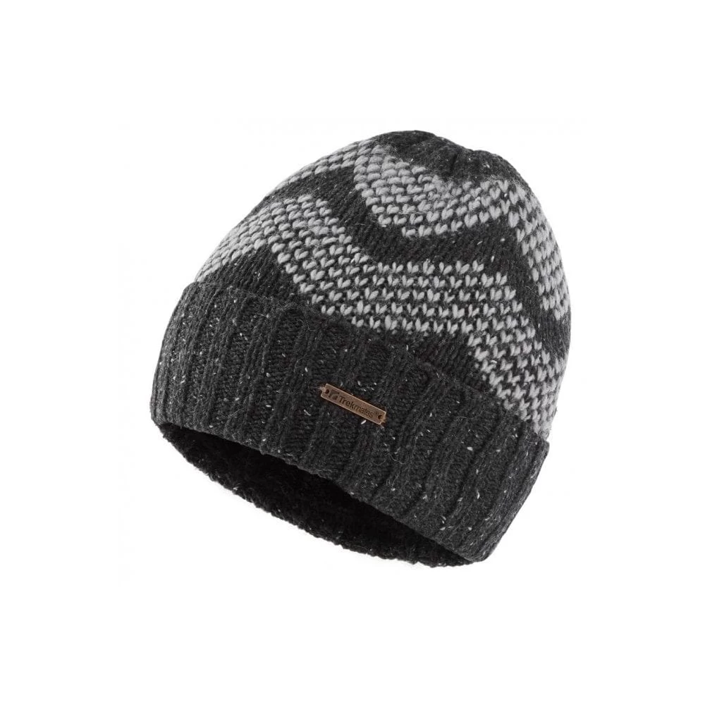 Jaquard beanie with speckle yarn and soft pile fleece lining.